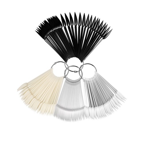 50 pz/set a punta a forma di ventaglio falso smalto per unghie formazione punte per pratica stick con supporto per anello